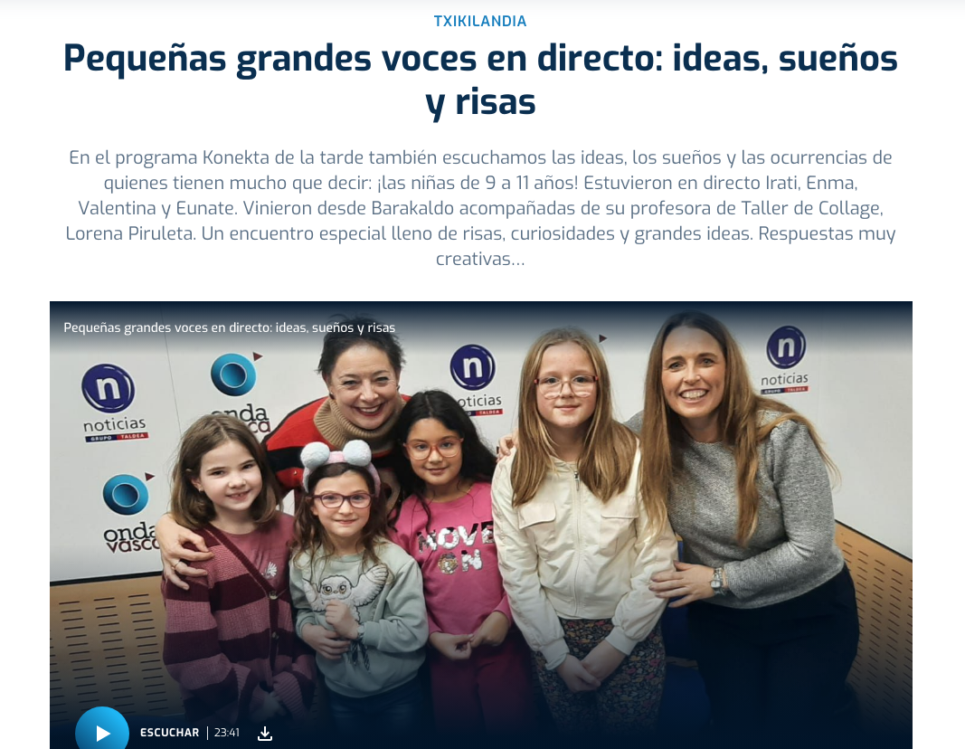 ¡Feliz de que me inviten de nuevo con las alumnas al programa de radio de ONDA VASCA en la sección infantil!