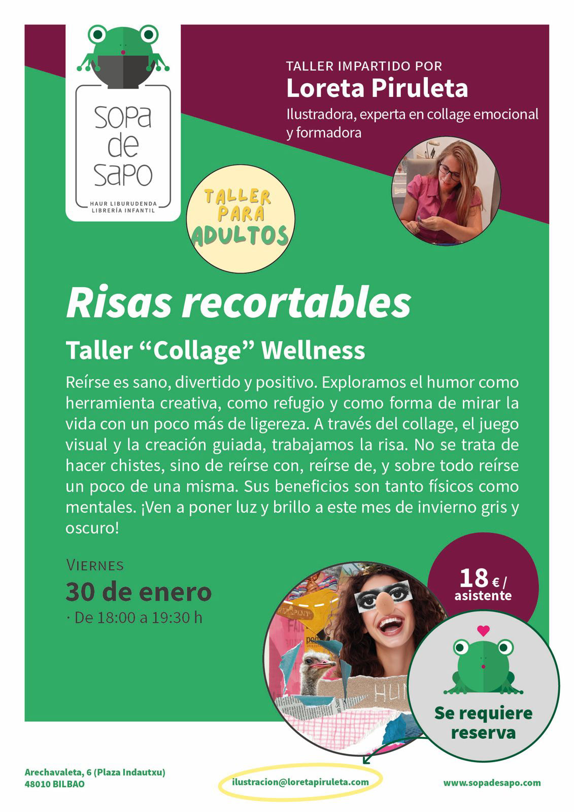 A través del collage, el juego visual y la creación guiada, trabajamos la risa. No se trata de hacer chistes, sino de reírse con, reírse de, y sobre todo reírse un poco de una misma.
