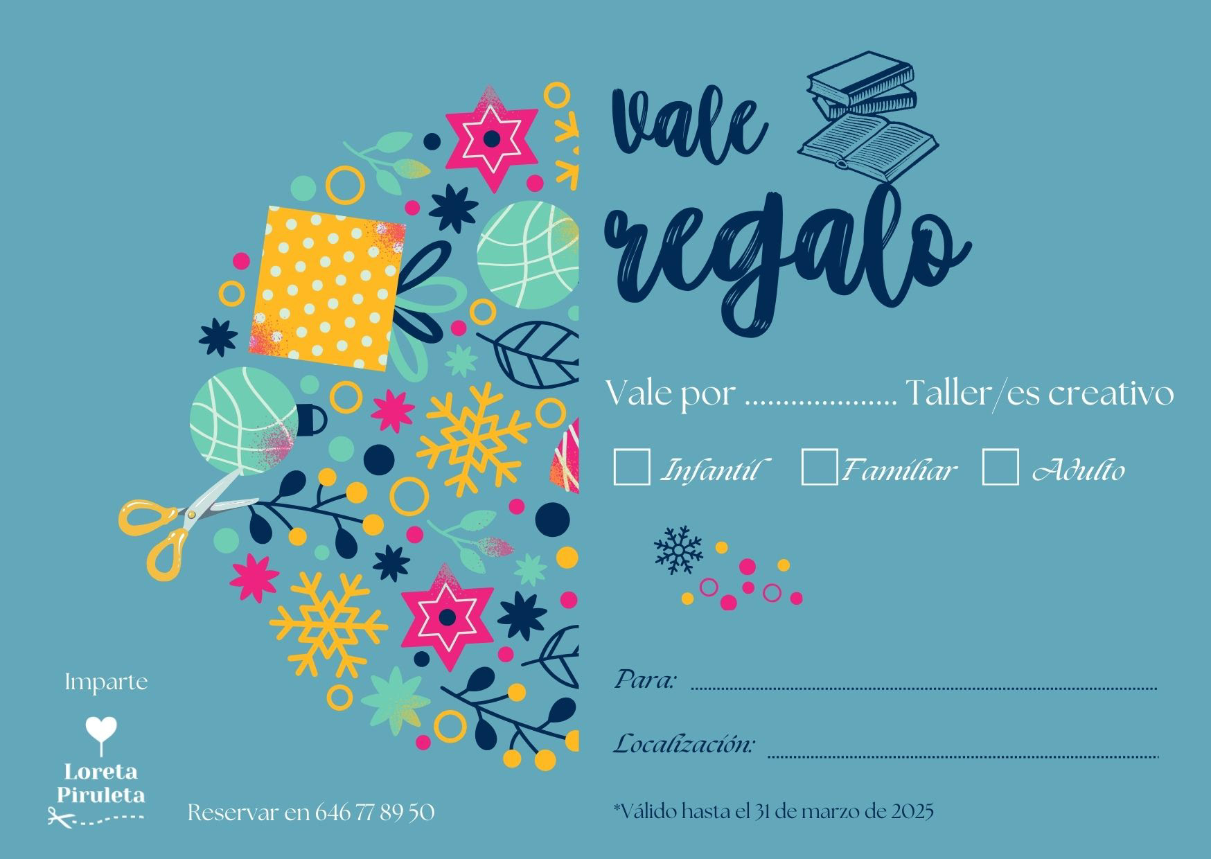 Cuento con bonos regalo que valen por uno o varios talleres infantiles, familiares o de adulto.