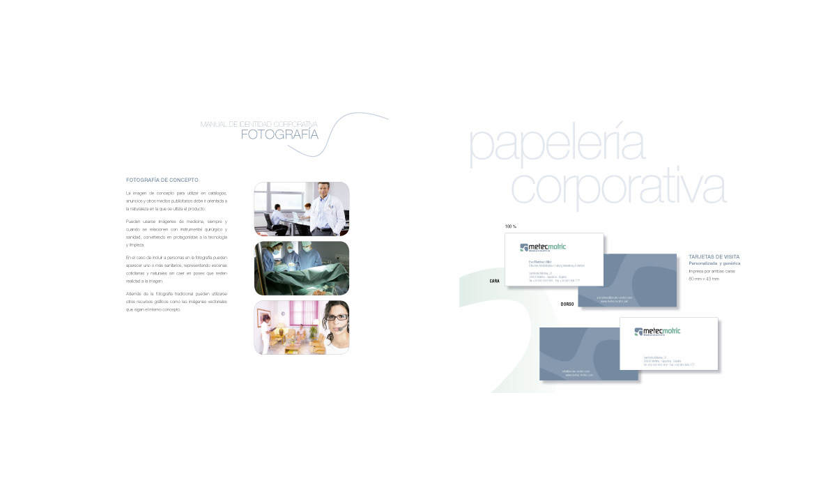 Re - styling de logotipo para empresa de sector sanitario y posterior aplicación de su marca. Desarrollo del Manual de identidad corporativa.
